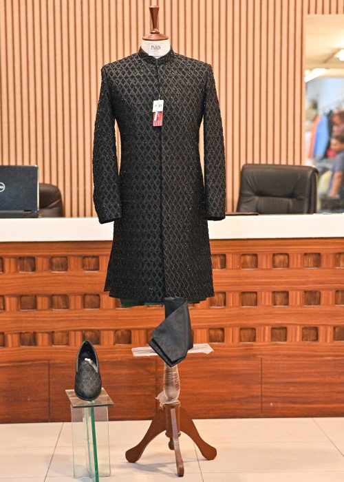 Be the first to review Black Sherwani for Men with Premium Handwork Embroidery With Shoes – Special Edition