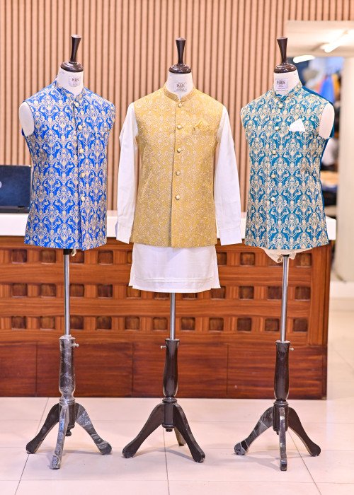 This stylish waistcoat showcases a unique blend of blue, pistol gray, orange, and light blue floral embroidery for a striking yet refined look. Tailored from high-quality fabric, it’s perfect for weddings, festive occasions, or formal gatherings. The multicolor embroidery adds depth and vibrance while maintaining sophistication. Pair it with traditional attire or smart trousers for an effortlessly elegant appearance.
